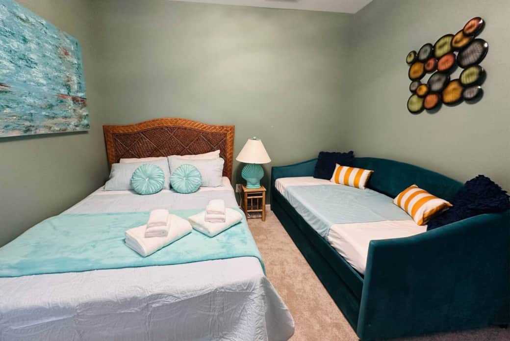 Bedroom 1 – Primary: King bed with ensuite bathroom featuring a jacuzzi, plus a sofa bed